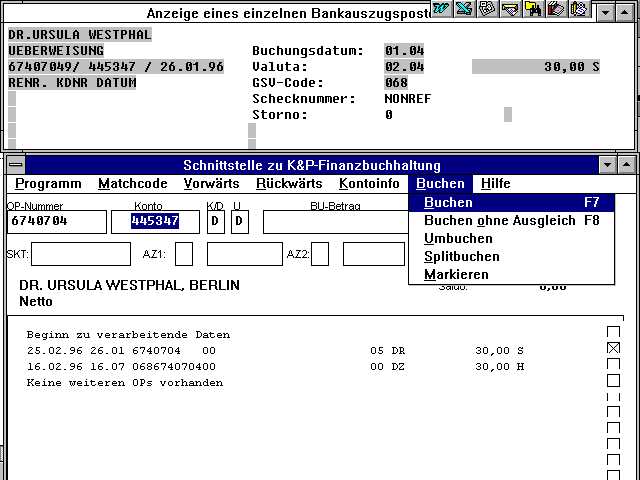 Durch die implementierte "Selbstlerntechnik" wird die Trefferrate von Lauf zu Lauf erhöht, da die Information, wie bei der manuellen Nachbearbeitung gebucht wurde, intern abgespeichert wird. Hierzu dient ein "Ghostwriter" der, während der Buchhalter die Bearbeitung der nicht zugeordneten Kontoauszugsposten mittels eines Dialogprogrammes durchführt, die Zuordnungskriterien im Hintergrund abspeichert.